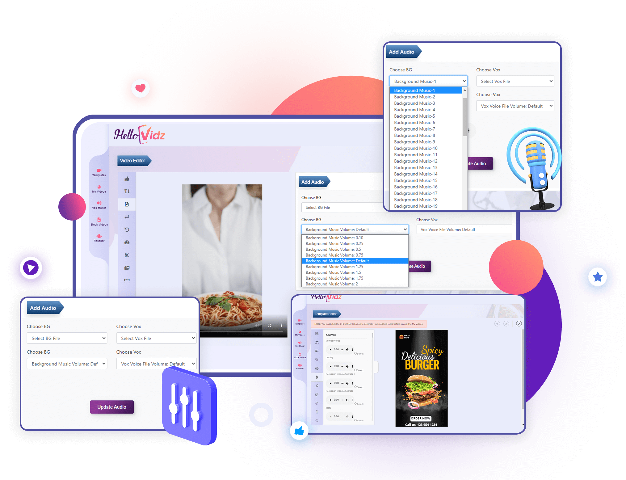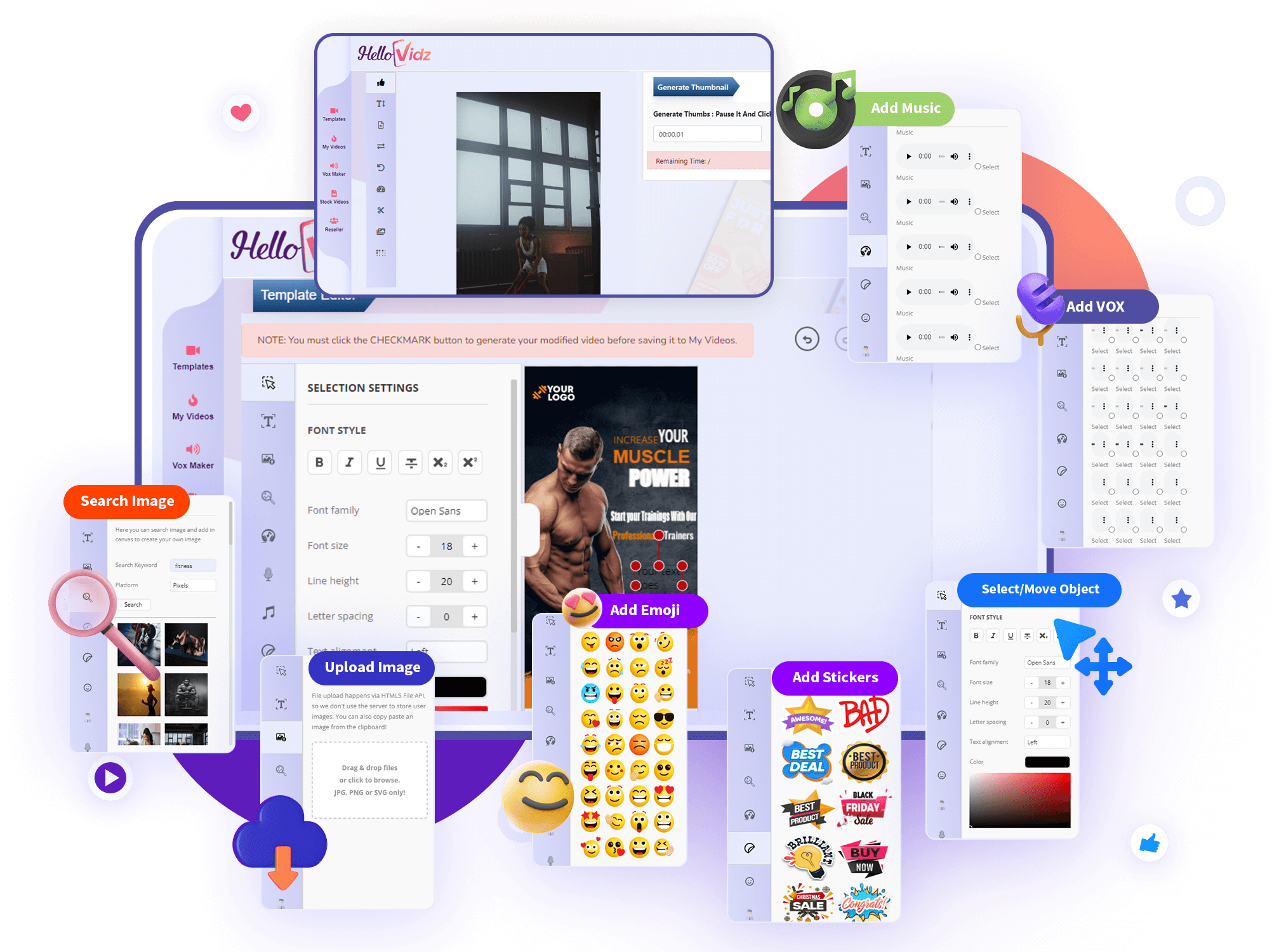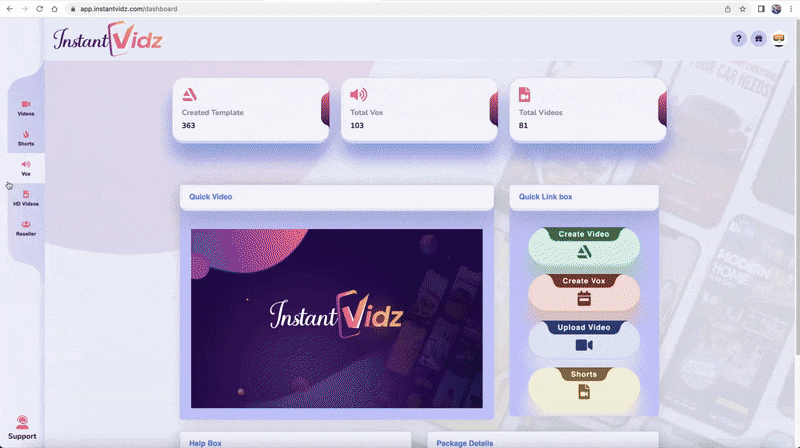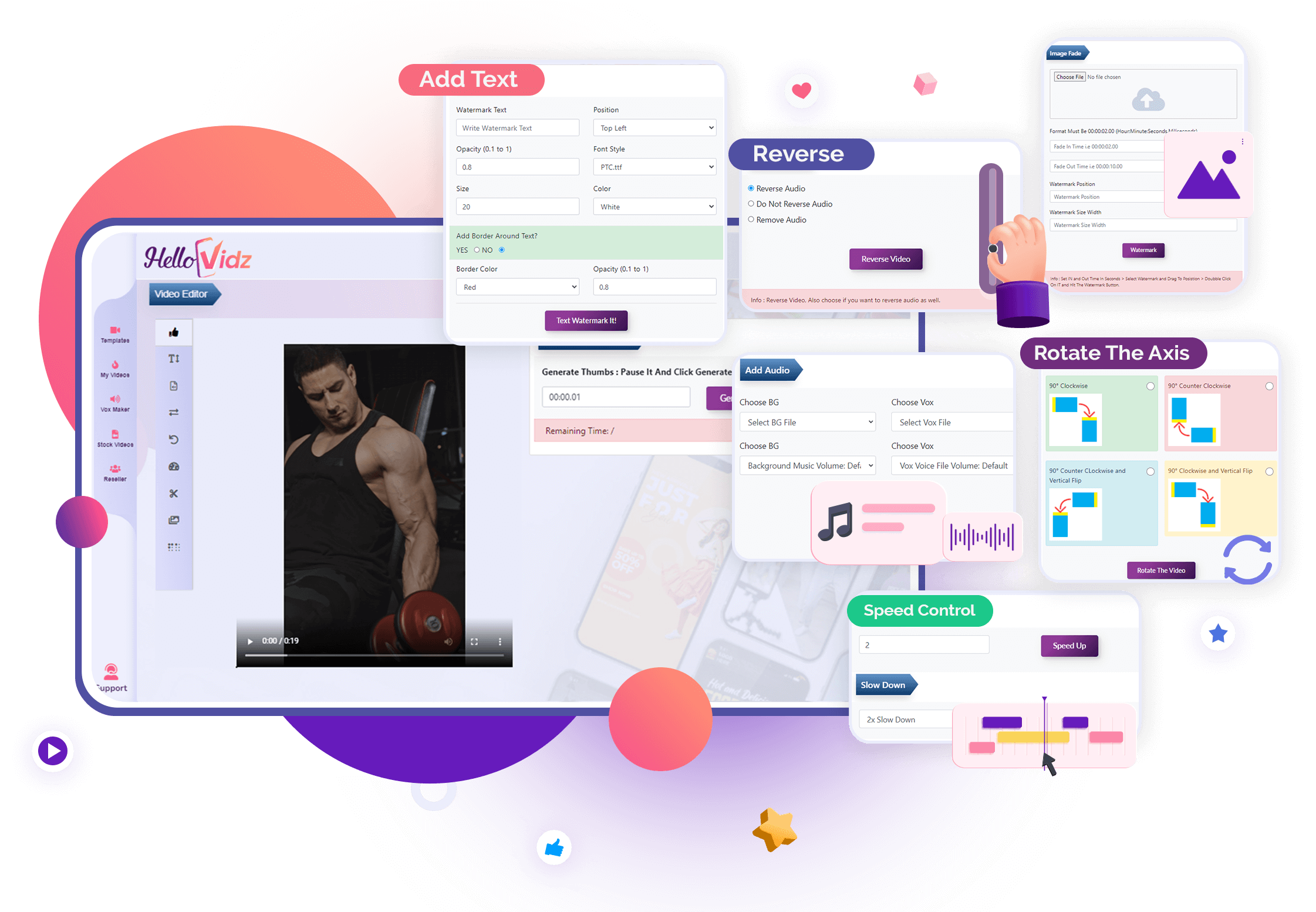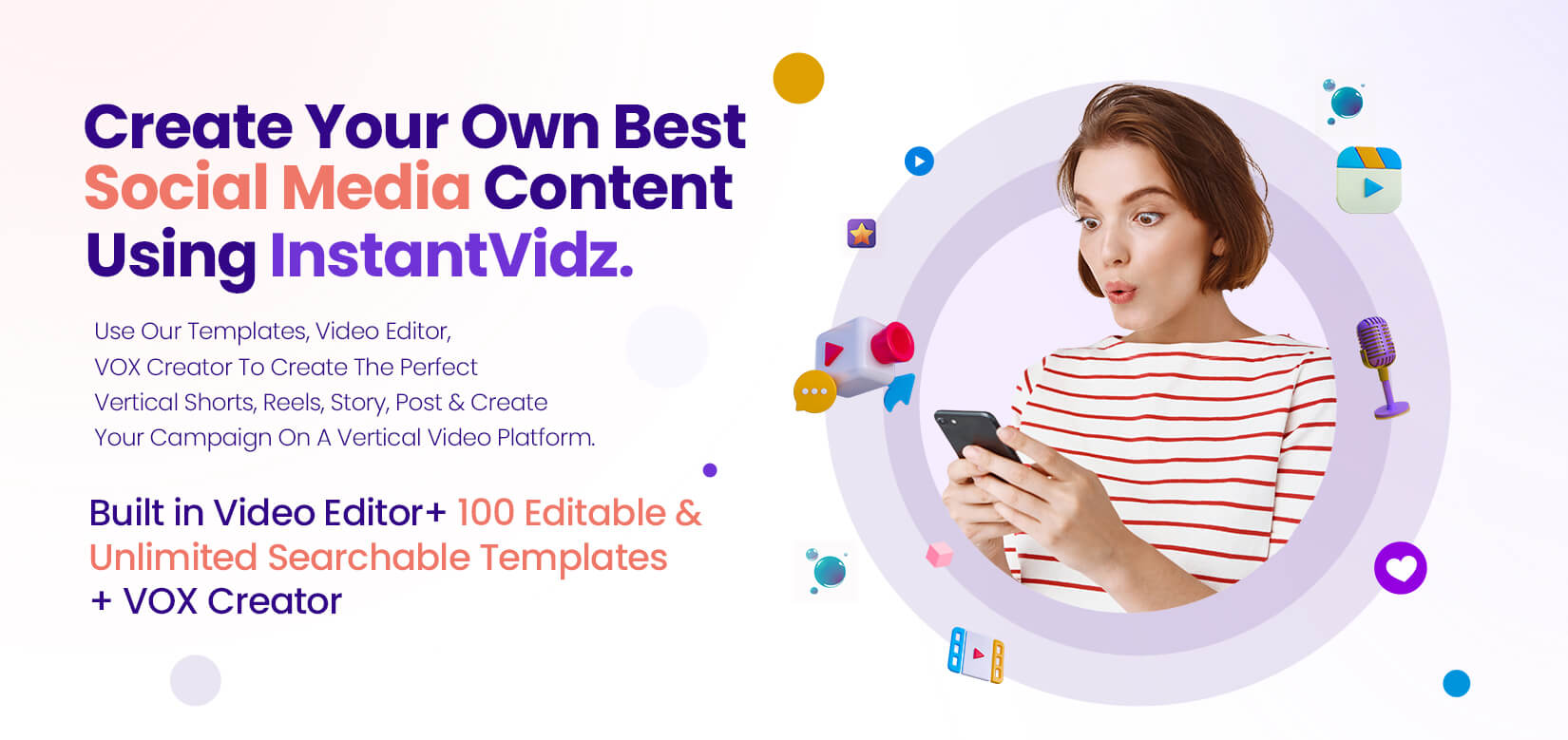 Login, Select A Template Or A Horizontal Video, Edit It With Our Robust Editor – Add Music, Trim, Speed Control, Watermark, Images, Create Music With VOX Etc And Share on social media Or Download.